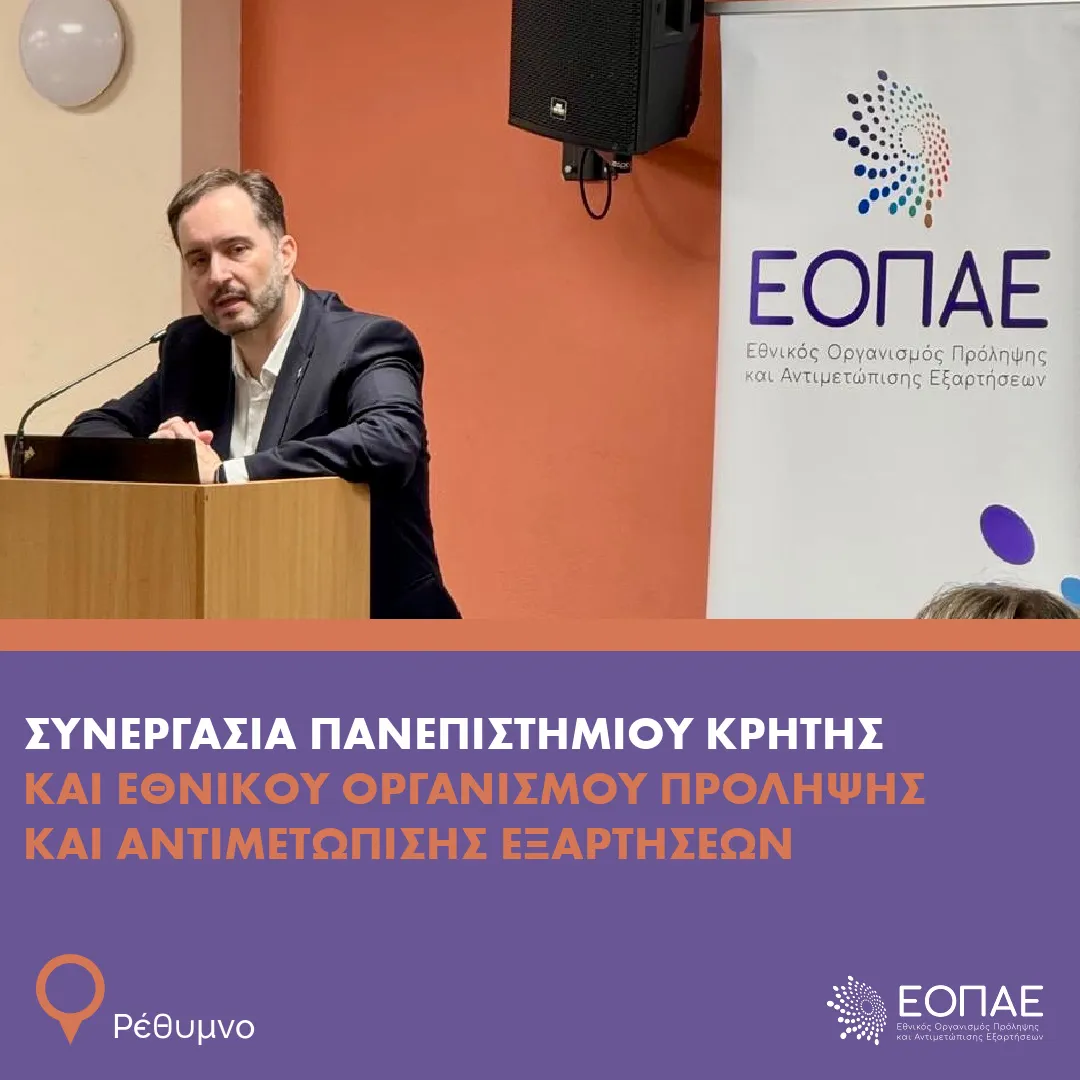 Η συνεργασία με το Πανεπιστήμιο Κρήτης και το Τμήμα Ψυχολογίας στηρίζεται σε ένα κοινό όραμα, τη σύνδεση της ακαδημαϊκής έρευνας και της επιστήμης με την εμπειρία στο πεδίο, με στόχο την προαγωγή της επιστημονικής γνώσης και την ενδυνάμωση των επαγγελματιών του χώρου των εξαρτήσεων.